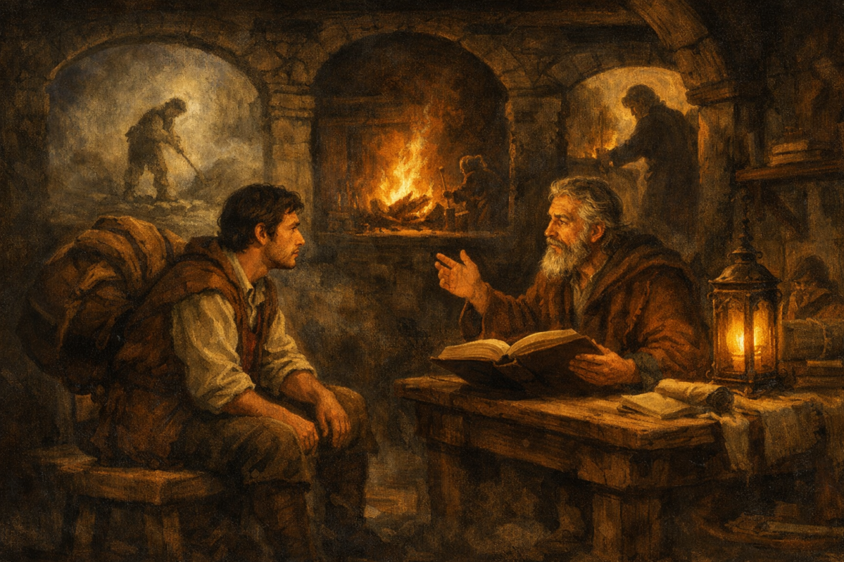 When Christian enters the house, he is welcomed by a man called the Interpreter. Bunyan never explains him in a technical way, but the meaning becomes clear as the scenes unfold. The Interpreter represents the work God does in a believer’s life to help him understand the truth. It is the ministry of the Word, the quiet work of the Spirit, the slow opening of the eyes.