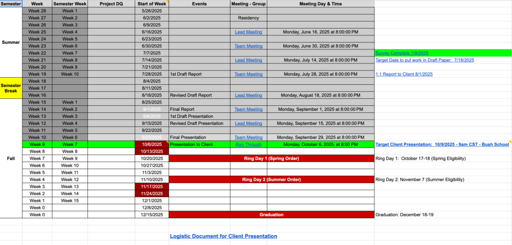 Texas A&M University Bush School. 2025. Timeline – Capstone 2025 Summer. Capstone Schedule Document.