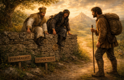 Worldly Wiseman offers an easier path built on moral effort. Christian learns that self-rescue cannot lift the burden of guilt. Only Christ can. Only grace does.